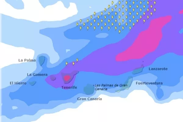 En Tenerife se esperan chubascos fuertes y persistentes en zonas de medianías orientadas al sur y al oeste, con precipitaciones acumuladas de hasta 30 mm en una hora y vientos de hasta 120 kilómetros por hora.