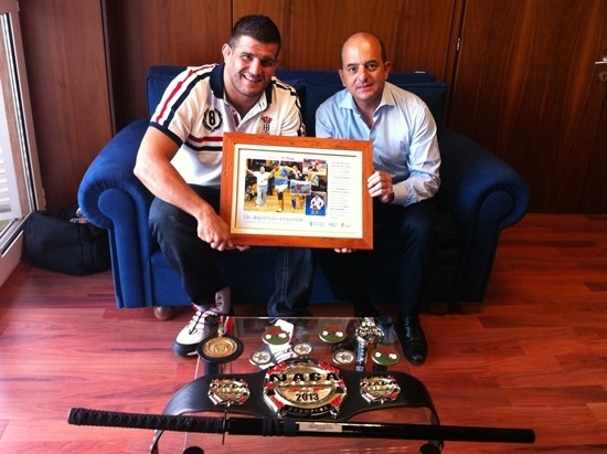 Durante la visita, Juan Espino, más conocido como El Trota mostró al regidor capitalino las medallas de Campeón del Mundo, obtenidas, además, en otras modalidades como jiu jitsu, artes marciales mixtas, y lucha senegalesa, durante su trayectoria deportiva.