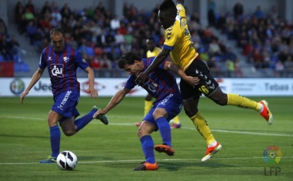 La UD Las Palmas ha sumado un punto esta tarde en su visita al Alcoraz de Huesca tras empatar a cero. El equipo amarillo, en las botas de Thievy, gozó de buenas ocasiones para ganar. Atouba, por doble amonestación, fue expulsado.