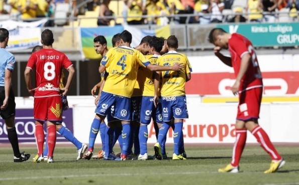 La UD Las Palmas ha vencido esta tarde al CD Numancia por dos goles a uno y dependerá de sí misma en la última jornada frente al Real Murcia para disputar la promoción de ascenso. La jornada acompañó al equipo amarillo que se vio beneficiada para los pinchazos de la Ponferradina y Alcorcón.
