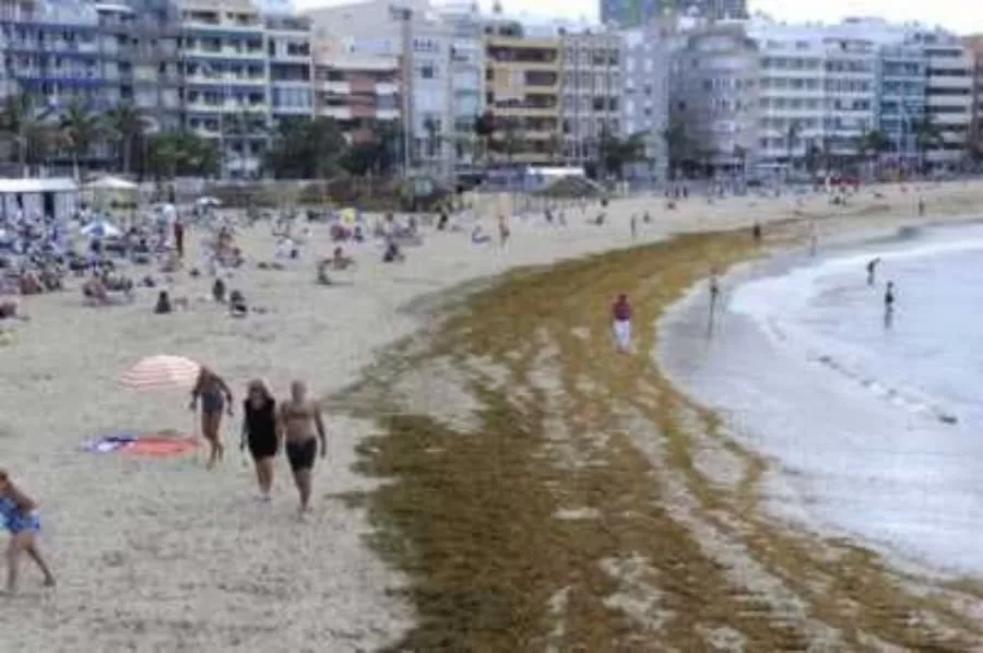 Hace escasos días, la misma playa capitalina apareció recubierta por esta flora marina, que suele emerger en grandes cantidades cuando hay mar de fondo o las mareas son muy fuertes.