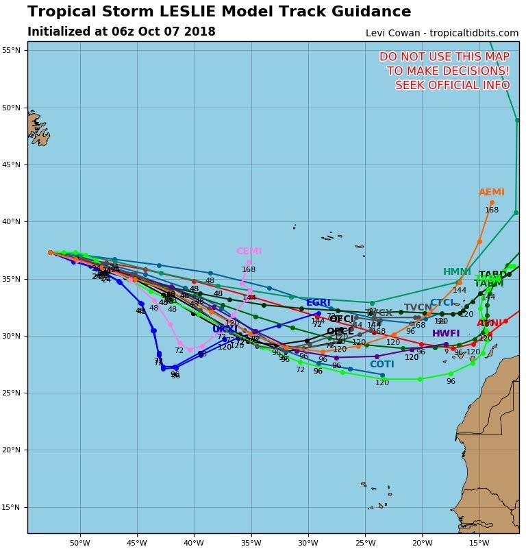 Leslie ha estado serpenteando el Atlántico desde el 23 de septiembre y es apodado a día de hoy como «el huracán zombie», no se sabe a dónde va y simplemente se resiste a morir.