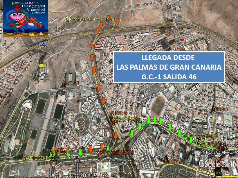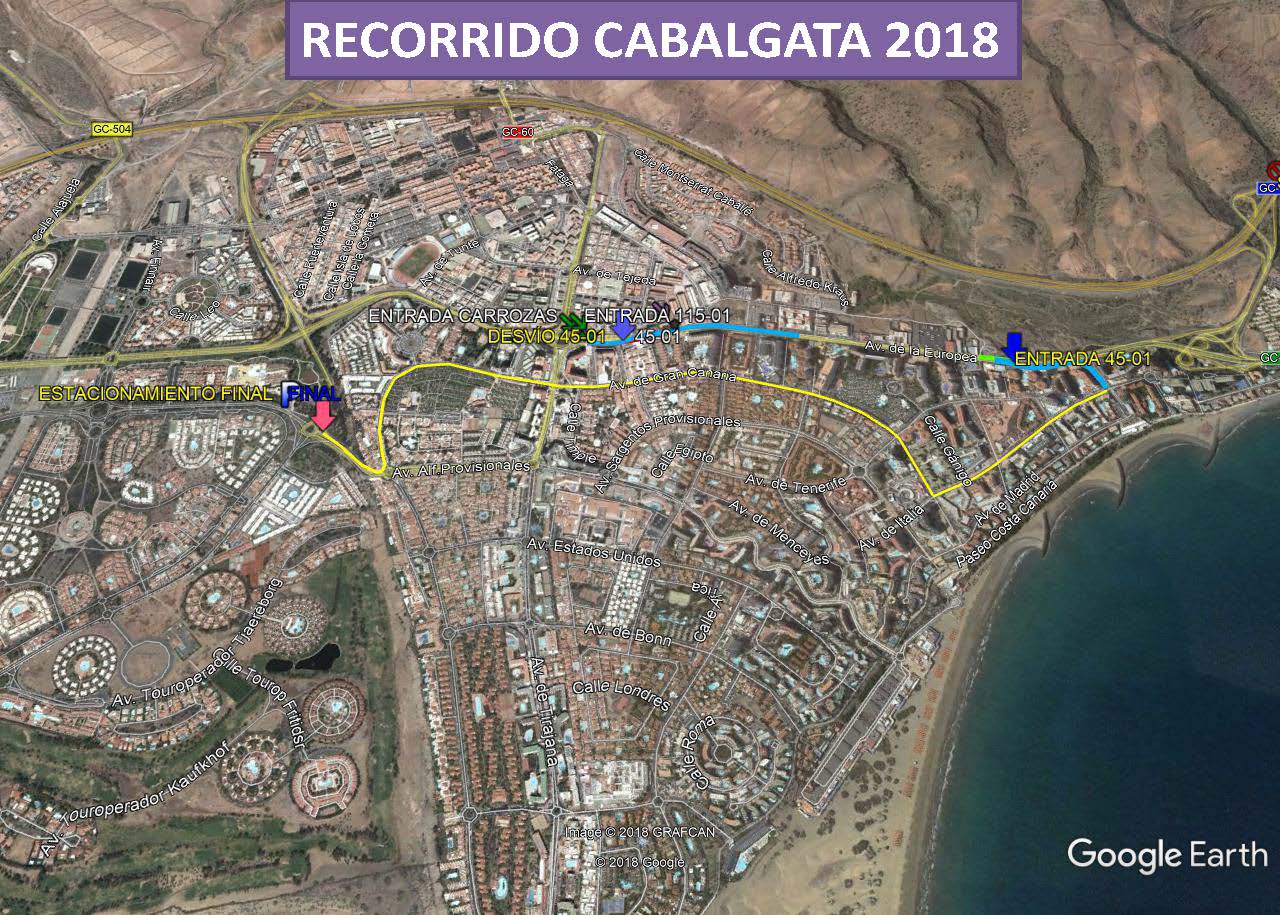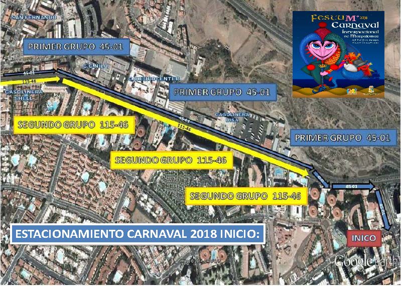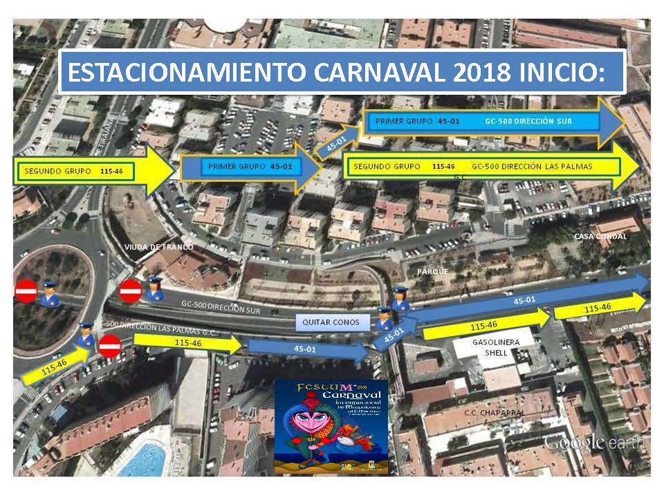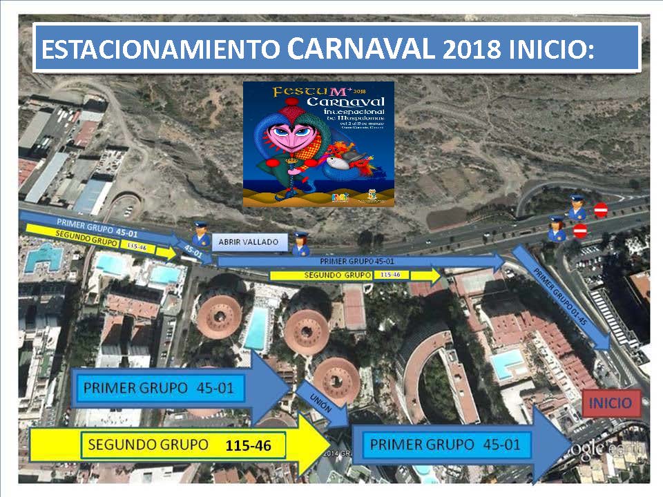 Apartado QUINTO de las mencionadas bases, señala que se ha dispuesto de un gran espacio a los que deben trasladarse aquellas carrozas que deseen estacionarse, se trata del aparcamiento/estacionamiento final que será únicamente en la Avenida Touroperador Tui, (frente al antiguo Ocean Park. como continuación lineal de la Cabalgata), desde la rotonda de la intersección con Avenida Tourperador Neckermann, en ambas direcciones y sentidos, hasta la rotonda dela intersección con la Calle Touroperador Sunnair (Maspalomas Espléndido/ Parque Toni Gallardo Maspalomas). Ampliando el circuito cerrado de Ia Cabalgata. La circulación por las citadas vías pública deberá ajustarse a la legislación vigente en materia de tráfico y seguridad vial. estableciéndose expresamente que QUEDA TOTALMENTE PROHIBIDO EL ESTACIONAMIENTO DE CARROZAS EN LUGARES DISTINTOS DEL ESPACIO HABILITADO QUE SE CITA EN EL APARTADO ANTERIOR» siendo la Policía Local la que velará por el estricto cumplimiento de lo estipulado en las bases, procediendo a denunciar todas aquellas infracciones que detecten.