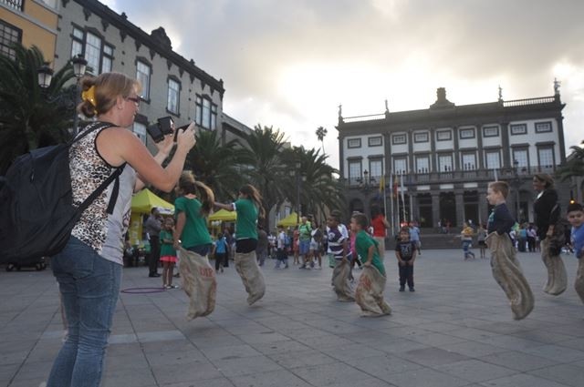 Los asistentes participaron desde las 16:30 hasta las 18:30 horas en un taller de reciclaje, un huerto urbano, cuenta cuentos, murales, la caja de los deseos, juegos tradicionales y un baile final. El Ayuntamiento ha organizado una exposición que inundará las Casas Consistoriales de fotos realizadas por la artista Fátima Luzardo que lleva el título ‘Expresión ante la cámara: somos familia europea’.