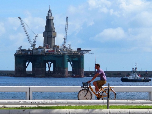 «Eirik Raude»,llegó el pasado lunes al puerto de Las Palmas de Gran Canaria, donde permanecerá unos dos meses para una revisión y puesta a punto general. Esta plataforma pesa más de 37.000 toneladas, mide casi 120 metros de alto por 110 de eslora y 80 de manga y su magnitud obligó a una maniobra de atraque de casi dos días, en el dique Reina Sofía, lugar donde permanecerá hasta su marcha. Su propietaria es la empresa Ocean Rig y está previsto que en su reparación intervengan gran número de empresas del puerto de Las Palmas de Gran Canaria.