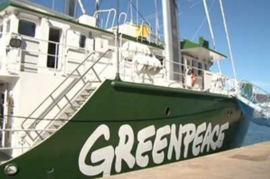 El Presidente de la Autoridad Portuaria de Las Palmas, Luis Ibarra, entregó esta mañana una metopa de bienvenida al nuevo buque de la ONG Greenpace ‘Rainbow Warrior III’ que está en viaje inaugural.