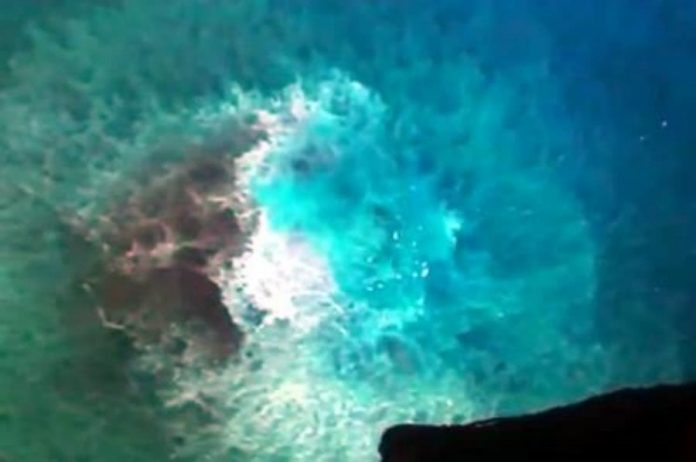 Vuelo científico involcan – guardia civil helicópteros sobre la zona del volcán submarino de la restinga, en el sur del hierro, en la mañana del día 7 de enero de 2012, midiendo los gases disueltos en el aire sobre la zona de erupción y tomando imágenes térmicas. video en alta resolución donde se pueden observar burbujeos y salida de materiales ceníceos y balones de lava humeantes al sur de la Restinga.