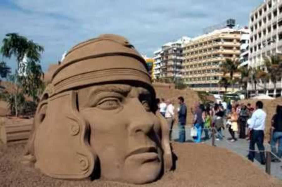 Los escultores daban ayer los últimos toques a la obra en medio de un sol de justicia, una imagen que el Ayuntamiento de Las Palmas de Gran Canaria quiere utilizar para vender el excelente clima del que goza esta tierra durante las fechas navideñas, de cara a su promoción turística.